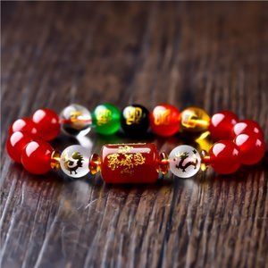Five-Element Feng Shui Red Agate Beads Bracelet