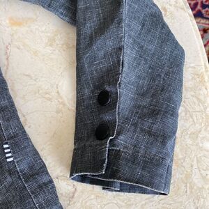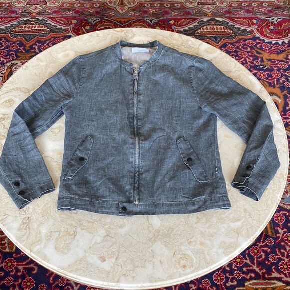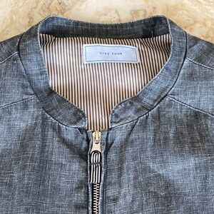 In excellent preowned condition Five Four Bomber jacket in beautiful 100% linen natural charcoal grey. Front zip and snap closure, angles front pockets with flap and snap closure, snaps at cuff, body is lined, sleeves are unlined. A perfect spring and summer jacket!