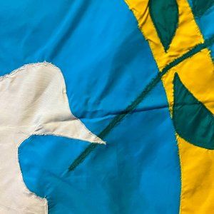 Vintage Ukrainian Peace Flag, Beautiful hand sewn detail, quality synthetic flag material.
