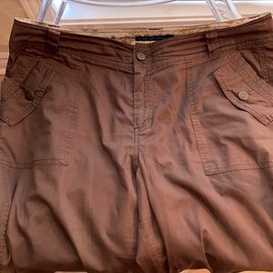 Flair Sport capris pants in wood brown, zip & button closure, front pockets 🤎 Antique Brass jean buttons on top & bottom.