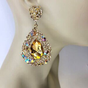Amber hued Crystal Teardrop earrings