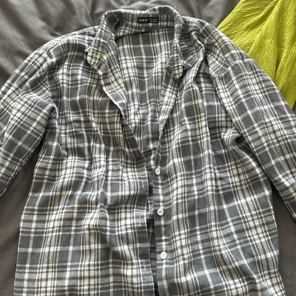 White and gray flannel Button Size S Baggy Long sleeves