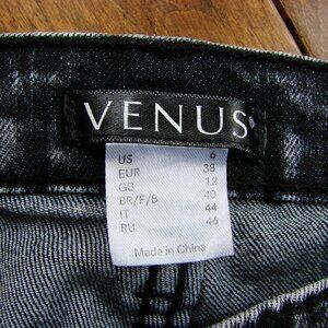 Flare Jeans Pearl Detailing Raw Hem Black Gray Boho Hippie Festival Wide Leg ~ Size 6 ~ 70% Cotton, 20% Polyester, 9% Rayon, 1% Spandex ~ by Venus