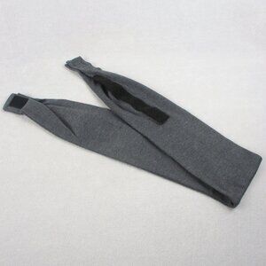 The belt is the same fabric and closes with hook and loop bands which allows it to be adjustable in size.