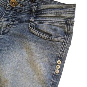 -Destroyed style (rip on one leg -- no sure if it was factory made or home made)