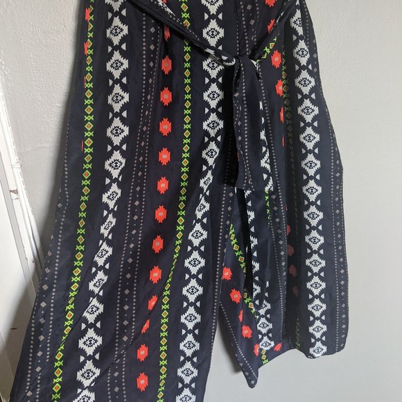 Flared-Leg Culotte Pants w Funky Boho Pattern