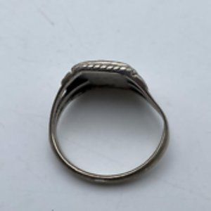 Flat Green Gemstone Chip Patterned Sterling Silver & Turquoise Square Cut Ring