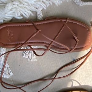 Never worn size 7 brown flat strappy sandals by Abercrombie. Retails for $75.
