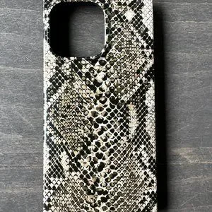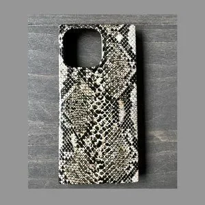 Chic python print square-edged iPhone case for the 13 Pro model.