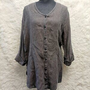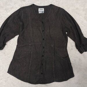 Flax Jeanne Engelhart Brown Blouse Shirt Jacket Button Down Linen Size small