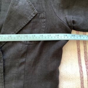 In very good pre-loved condition, black unlined linen blazer with applied pockets. True black colour, appear lighter on pictures than it is for real.
