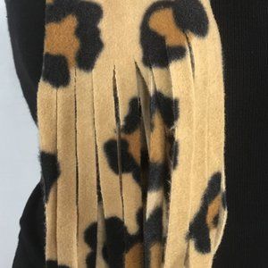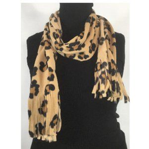 Leopard print scarf in cozy fleece with fringed ends. New. 9.5" x 65" (including fringe).