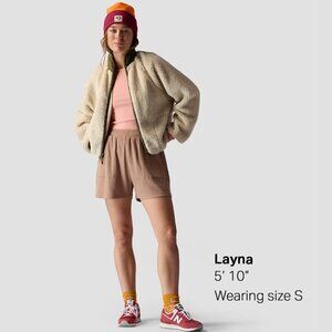 STOIC brand high pile fleece jacket. Size Large. Oatmeal colour with forest green trim.