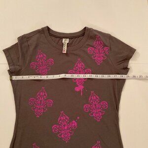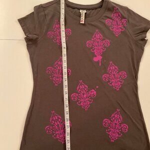 Fleur De Lis Graphic Tee - Size XL - Grey/Purple - Bust 19' Length 25.5
