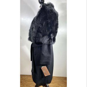 Fleurette Women's Black Oversize Dyed Fox Fur-collar Wool Wrap Coat O/S
