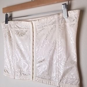 "Instant Slimmer Long Torso Waist nipper reduces waistline and midriff while providing an hour glass shape". Online Amazon Description.