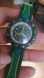 Dynamic Swatch watch featuring a bold green and yellow design. Ideal for a colorful statement. pre owned some wear, unisex for adults and kids universal watch