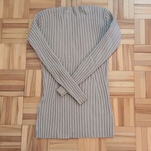 Flippa K Wool Rib Sweater, probably shrinked, fit size S, stretchy fabric. some minimal pilling, use measurements for better fit. armpit to armpit is 15", length is 23", length of sleeve from shoulder is 12.5"