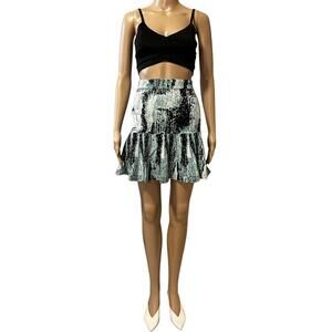 Step out in style with this chic flirty ruffled skirt featuring a stunning abstract print. Perfect for a casual day out or a fun evening event, it offers both comfort and style. Key features include: - Vibrant abstract design in shades of light turquoise and black - Flared ruffle hem that adds playful movement - High waist for a flattering silhouette - Soft and breathable fabric for all-day comfort - Versatile enough to pair with a range of tops for any occasion.