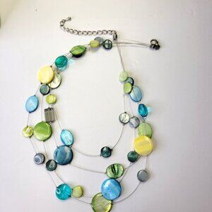 Floating Bead Necklace with Blue and Green Flat Round Discs