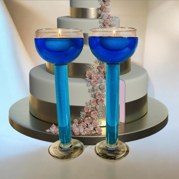 These are 2 clear glass candle holders. Perfect for festive occasions.