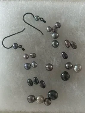 Beautiful shades of grey, silver, and black pearls with overtones of lavender.