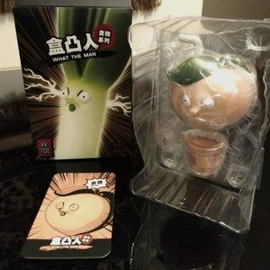 Excellent condition, unopened clamshell PVC Pilo the Peach 'What the Man' figure by LEII and POP MART. There's an odd sort of charm to this collectible toy. Definitely a conversation piece. Not ideal for very young or small children due to choking hazards.