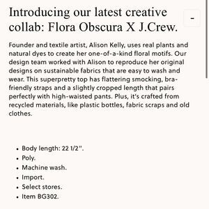 Flora Obscura X J.Crew featherweight satin tank top in lavender fields Medium