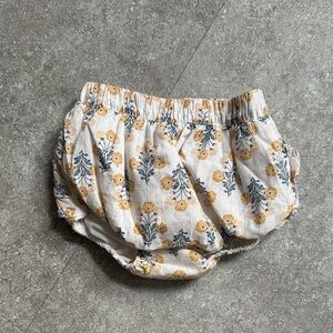 Charming baby bloomers featuring a floral design. Elastic waist for comfort.