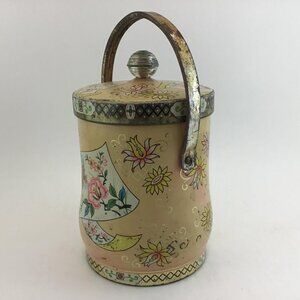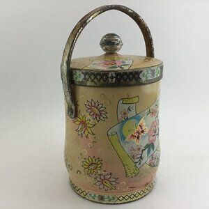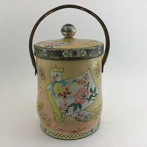 Floral Biscuit Tin With Handle Asian Style Tin Flowers and Butterflies Vintage