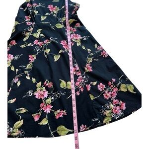 Black floral dress by Poet. It has spaghetti straps and a back zipper and has a bit of stretch to it. Would look cute with the pink sweater I have in my closet as well, see last photo.