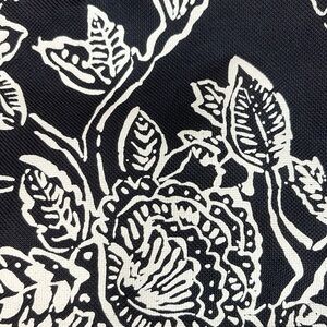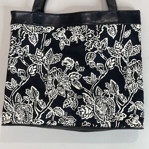 Floral Black and Ivory Tote Bag Faux And Canvas Snap Closure Lined Beach
