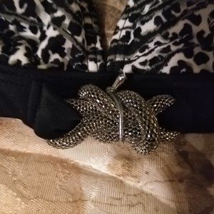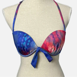 Stylish floral swim bikini top with strappy back design. Features black and white floral pattern. Like new size XS