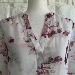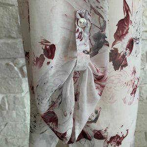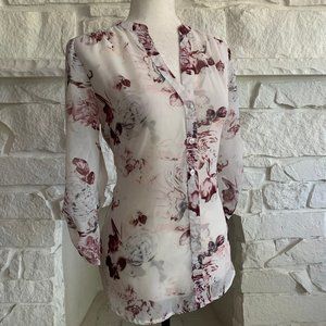 A nice lightweight blouse, perfect for fall or spring. Great for wearing with leggings, dress pants or tucked into a skirt. I didn't put a hip measurement because it's pretty forgiving with the slits at the sides. Material is not stretchy, size tag says small but fits more like medium or large.