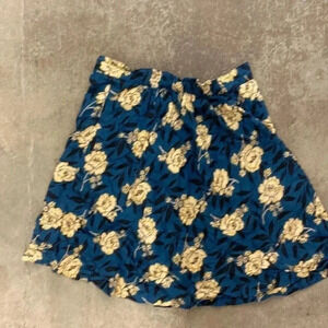 Chic floral skirt in a vibrant blue with yellow accents. Perfect for adding a pop of color to your wardrobe.