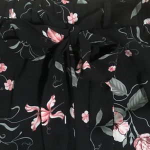 This matching set is ideal for a summery boho look! High waisted pants that tie in the front and an exposed shoulder crop top with elastics at the shoulders and waist for a good fit.