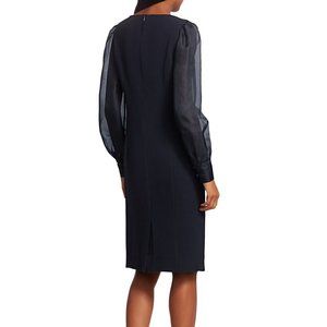 Floral Broach Silk Organza Puff-Sleeve Sheath Dress