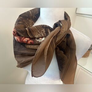 Elegant brown scarf featuring a beautiful floral design. Perfect for adding a touch of sophistication to any outfit.