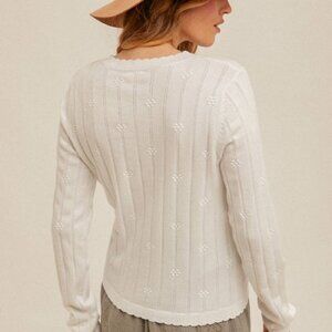 FLORAL DETAIL SCALLOP EDGE BUTTON DOWN CARDIGAN