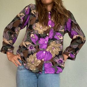 Very light, breezy floral blouse. Button up with a loose fit for medium sizes. More fitted for size Large to XL