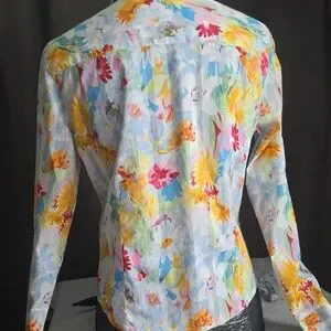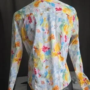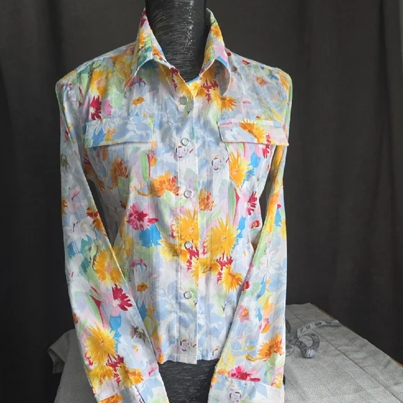 Brighten your wardrobe with this vibrant floral button-up blouse. Perfect for any occasion, this blouse features a colorful floral pattern that adds a touch of elegance to your outfit.