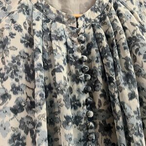 Elegant floral blouse with a button-up design. Perfect for any occasion.