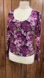Women's long-sleeve cardigan. Purple floral print. Button closure. Ribbed detailing. Bell sleeves.