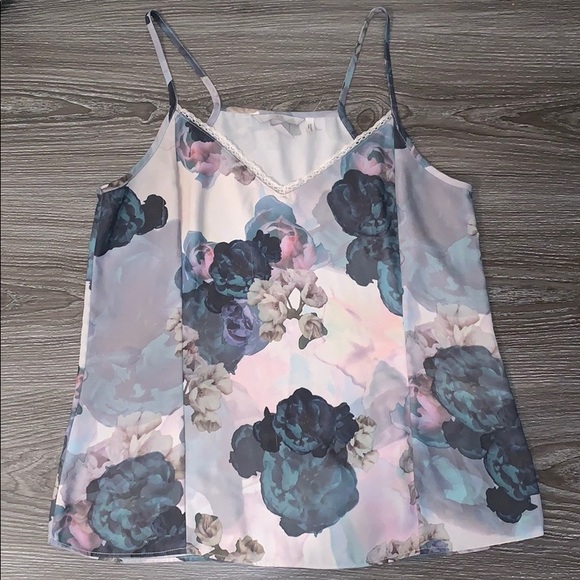 Purple Floral cami. Worn a handful of times. Lace trim around the neck line.