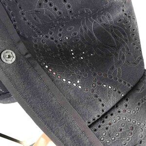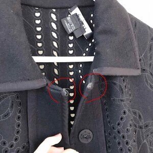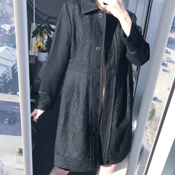 Floral Carved Wool Blend Maxi Coat: Black Punched Hole Jacket, Size M