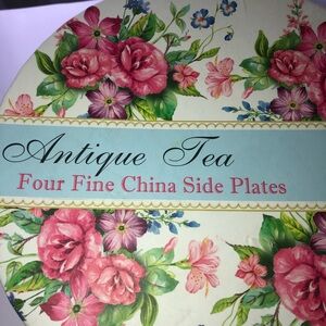 Add a touch of the beautiful English countryside to your table setting with this set of four fine porcelain side plates by Creative Tops. These round plates feature a charming floral pattern in vibrant multicolours, inspired by a garden theme. Each plate is dishwasher safe and perfect for your next outdoor tea party or indoor dining experience. The set comes in a box and is ideal for a service of four. Bring a touch of country-style to your dining experience with these elegant plates. Never used or very gently used. Great for shower gift, wedding gift. For that perfect tea part or for serving sandwiches or old fashion sweet plates. . Please check pics over.