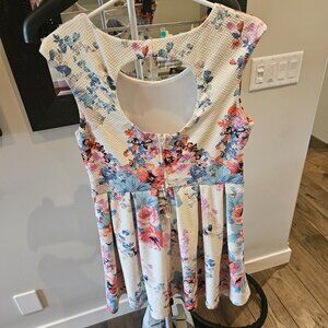 This pre-loved beauty isn't perfect anymore but she still wants to go to the park or a party. Keyhole back but high neck front, this mini dress is also lined. Bust: 22" Waist: 17" Skirt: 18"