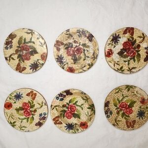 Beautiful Decorative laquered Box of 6 Vintage Floral paper mâche Coasters.