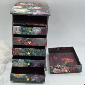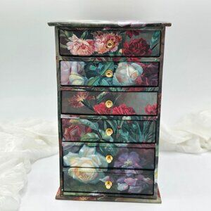 Floral Decoupage Jewelry Box | 6-Drawer Paper Mache Organizer | Cottagecore