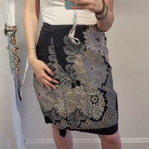 Floral Dries Van Noten Silk x Linen Faux Wraparound Skirt-Size 6